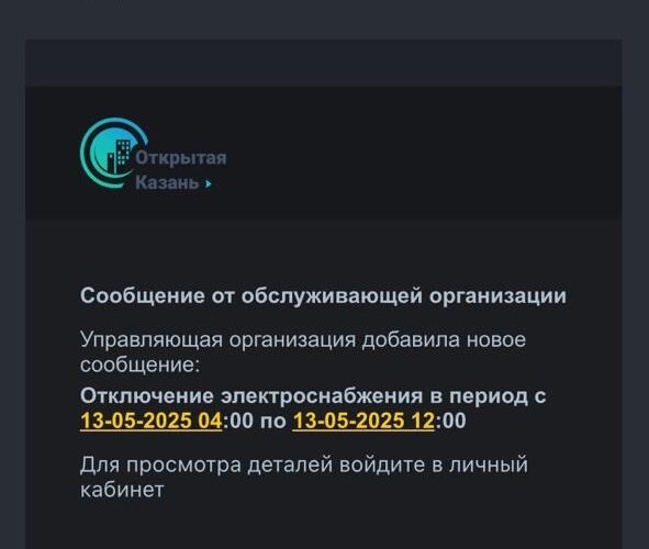 Жителям этих населенных пунктов пришло сообщение с информацией о том, что электричество будет отключено с 4:00 до 12:00 13 мая.