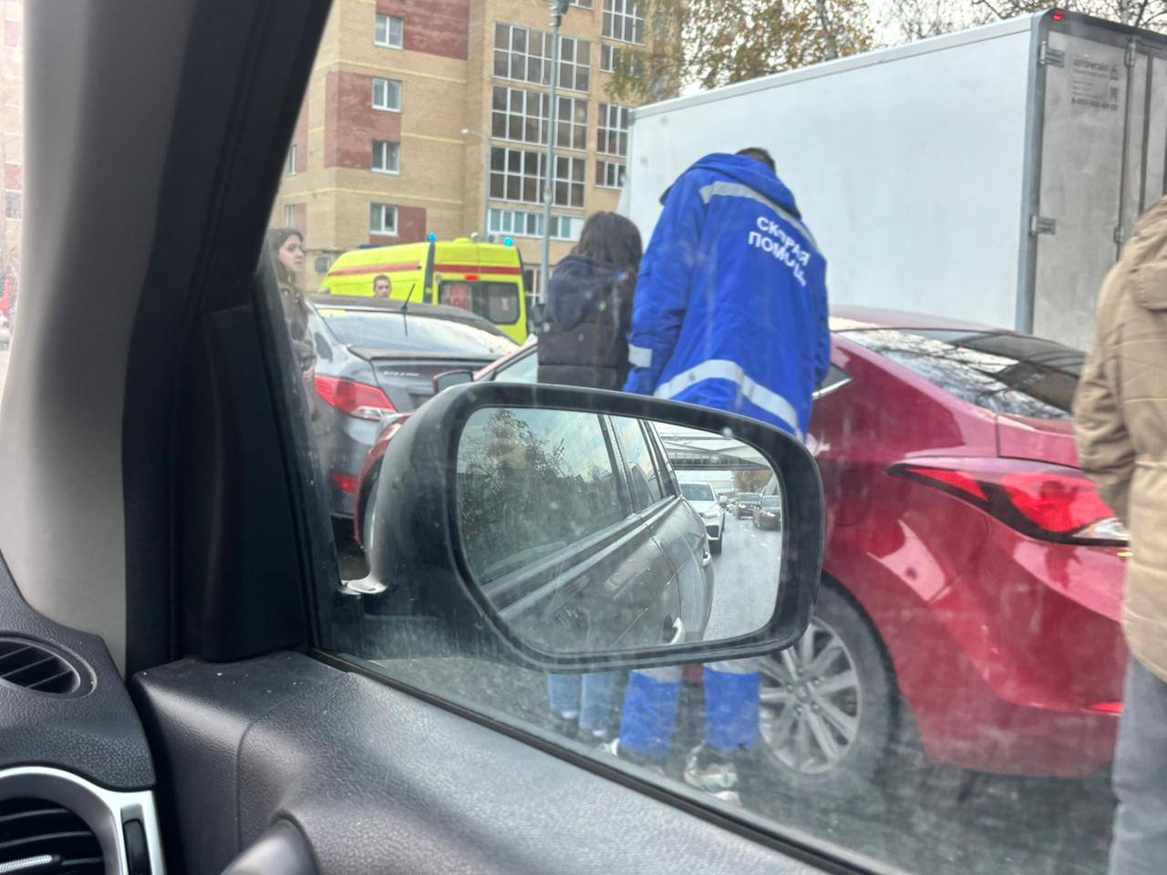 На них видно, что как минимум четыре легковушки стали участниками ДТП. На месте уже работают сотрудники скорой медицинской помощи.