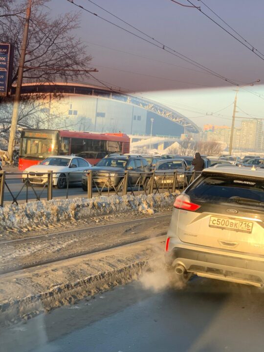 Судя по кадрам, которыми поделились очевидцы в соцсетях, одна из машин заехала на трамвайные пути, из-за чего встало движение на этом участке. Затор протянулся на 2 км от перекрестка Ямашева — Амирхана.