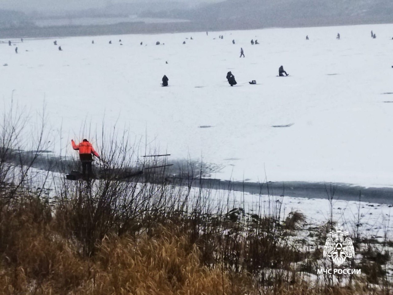 Сотрудники МЧС провели с рыбаками профилактические беседы о безопасной толщине льда.