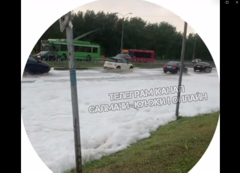 Участок дороги в Приволжском и Советском районах Казани затопило пенной рекой, неизвестного происхождения.
