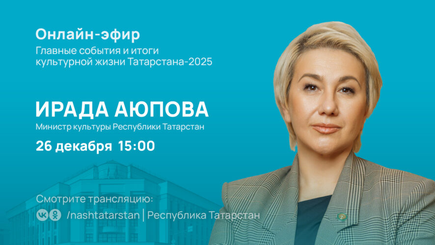 Глава Минкульта РТ Ирада Аюпова выступит в прямом эфире и ответит на вопросы жителей республики. Трансляция пройдёт в эту пятницу, 26 декабря.