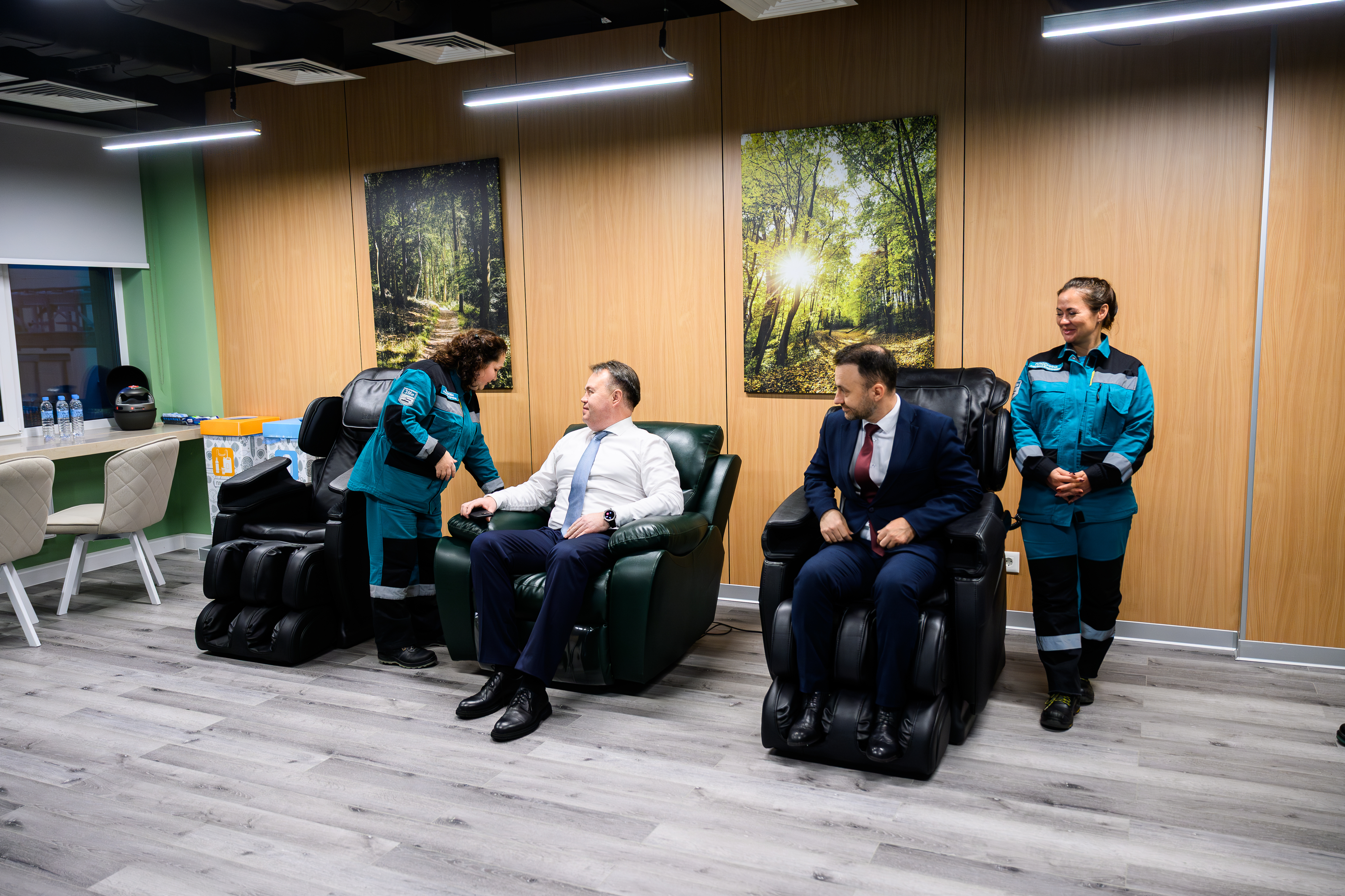 Министр также осмотрел центры здоровья и оценил комнату психологической разгрузки персонала, оснащенную массажными креслами, капсулой сна и массажерами для глаз и головы. С приходом СИБУРа изменилась система оказания медицинской помощи работникам предприятия. Центры здоровья располагаются в новых, отремонтированных корпусах, расположенных на производственной площадке. Здесь можно пройти медосмотр, диспансеризацию, вакцинацию и физиотерапию, а также оформить листы нетрудоспособности и получить направления к более узким специалистам. Сейчас на предприятии функционируют три комнаты психологической разгрузки и три центра здоровья, оснащенные современным медицинским оборудованием.