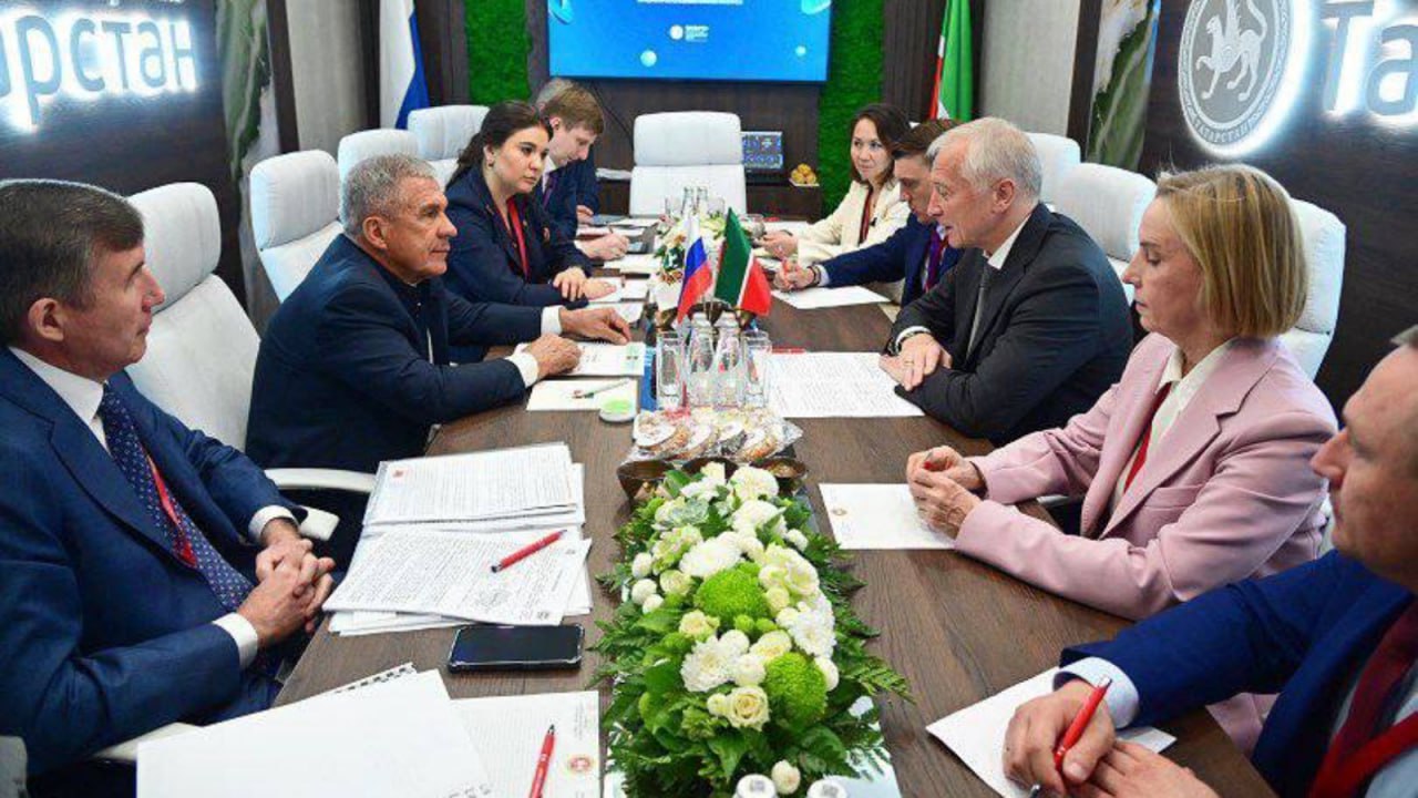 В рамках Петербургского международного экономического форума (ПМЭФ) состоялась встреча Раиса Татарстана Рустама Минниханова с губернатором Томской области Владимиром Мазуром.
