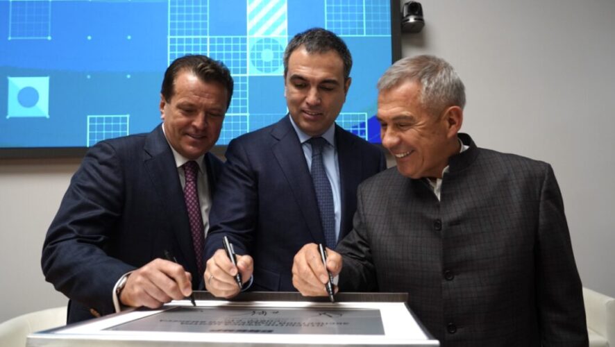 -Смотрите, конечно, те или иные изменения они всегда вызывают ожидание проблем или вопросов. По большому счету, наш стратегический партнёр СИБУР пришел. Мы, конечно, были знакомы, но не на столько чтобы. Все, что привнесли — очень нам импонирует. Во-первых, отношение к персоналу — начали с того, чтобы создать условия чтобы люди могли в хороших раздевалках. Решили вопрос по питанию, даже вот в этом помещении есть медицинская помощь хорошая, есть центр по питанию, — сказал Минниханов, — Такие серьезные амбиции, я не говорю о том, что мы очень хорошие социальные объекты сделали по Нижнекамску. Это было очень востребовано. Мы женились удачно. Думаю, особо претензии нет. Мы просто начинаем. Это хороший партнер. Смотрите, это самые успешные специалисты переезжают в Казань, с Москвы, с Нижнего Новгорода. Это же генетический потенциал — значит они здесь кого-то найдут. Детей будут рожать. Это серьезно. Мы полностью вместе работаем.