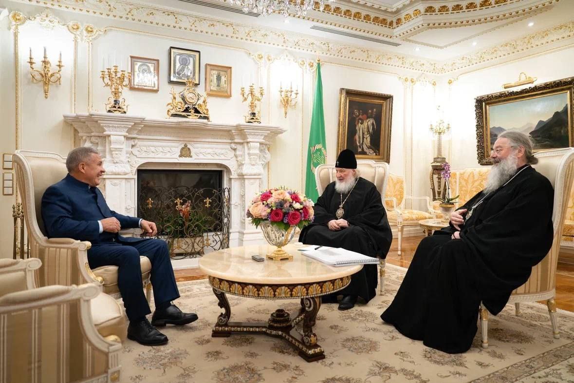 Сегодня раис Татарстана Рустам Минниханов провел встречу со Святейшим Патриархом Московским и всея Руси. Об этом раис республики написал в своем телеграм-канале.
