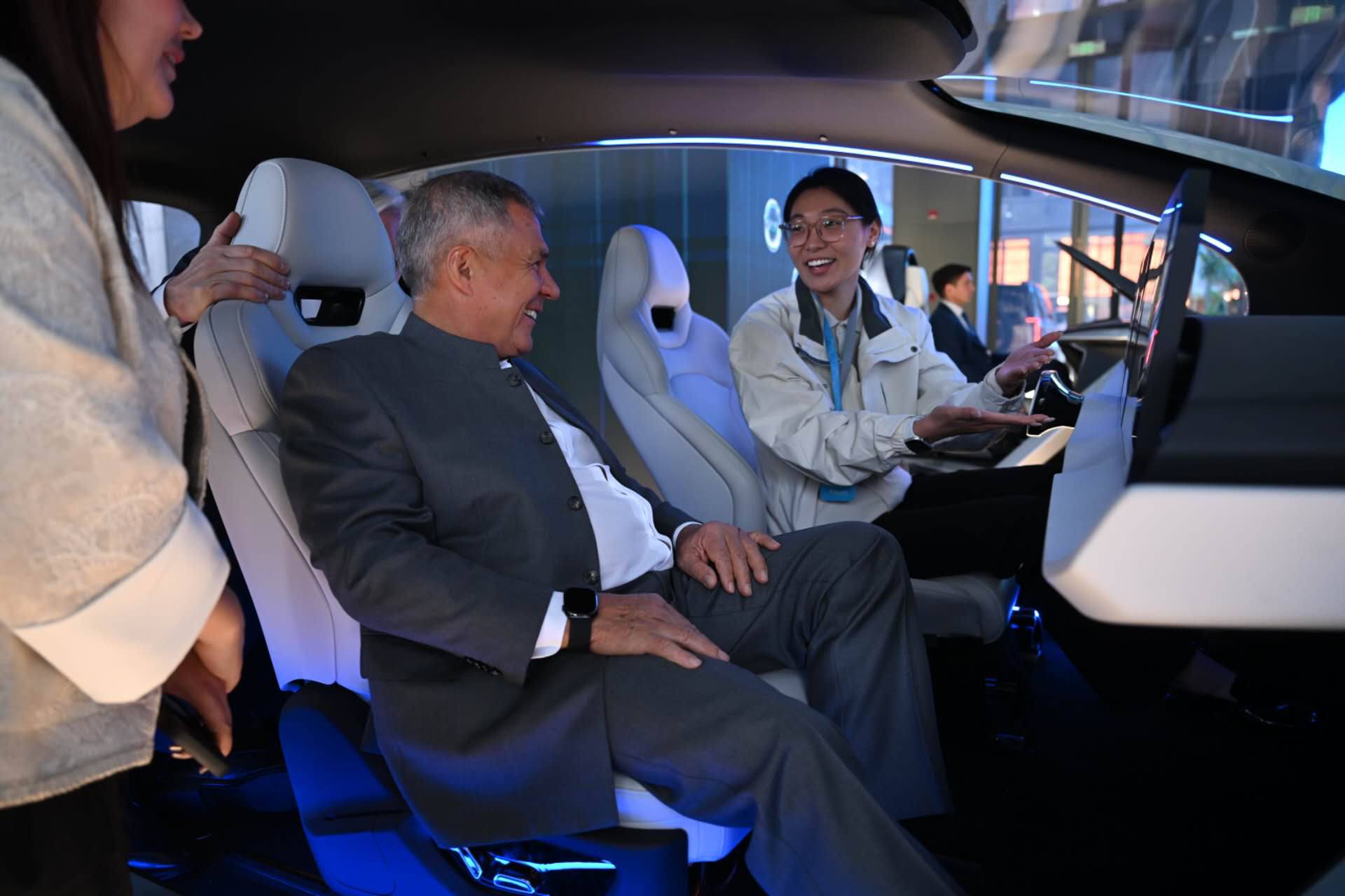 Рустам Минниханов также опробовал систему электронного рулевого управления Steer by Wire, разработанную компанией Shibao. Эта технология позволяет передавать команды от водителя к исполнительным устройствам с помощью электрических сигналов, исключая прямую механическую связь.
