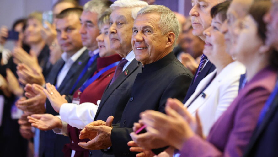 Перед секретарями первичных отделений выступили действующий руководитель РТ Рустам Минниханов и сенатор Александр Терентьев.