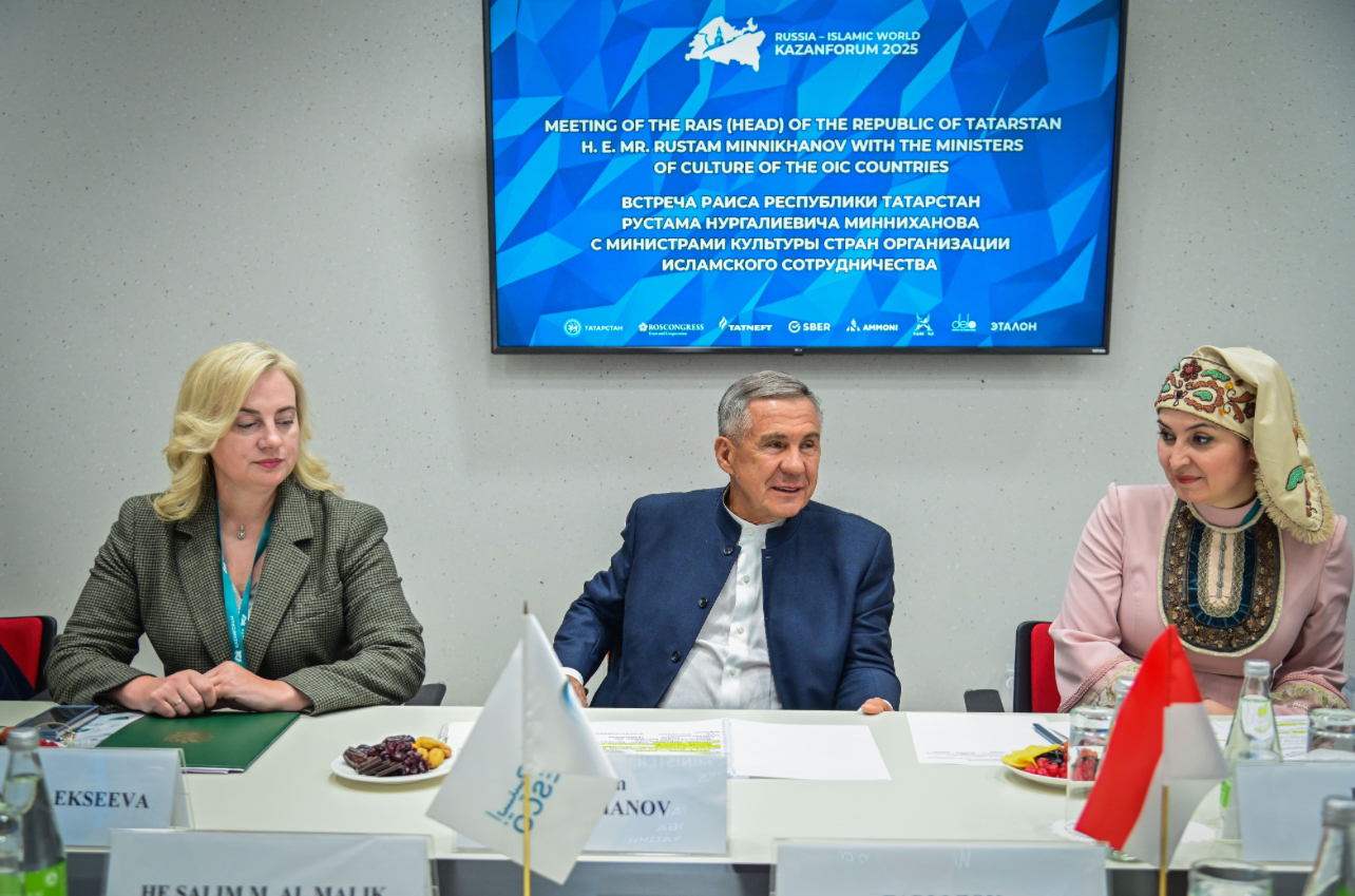 Раис Татарстана Рустам Минниханов провел встречу с министрами культуры стран Организации исламского сотрудничества. Дипломаты пообщались во время KazanForum-2025 в «Казань Экспо». Участие в мероприятие также приняли заместитель Премьер-министра РТ Лейла Фазлеева, заместитель министра культуры России Жанна Алексеева и министр культуры РТ Ирада Аюпова.