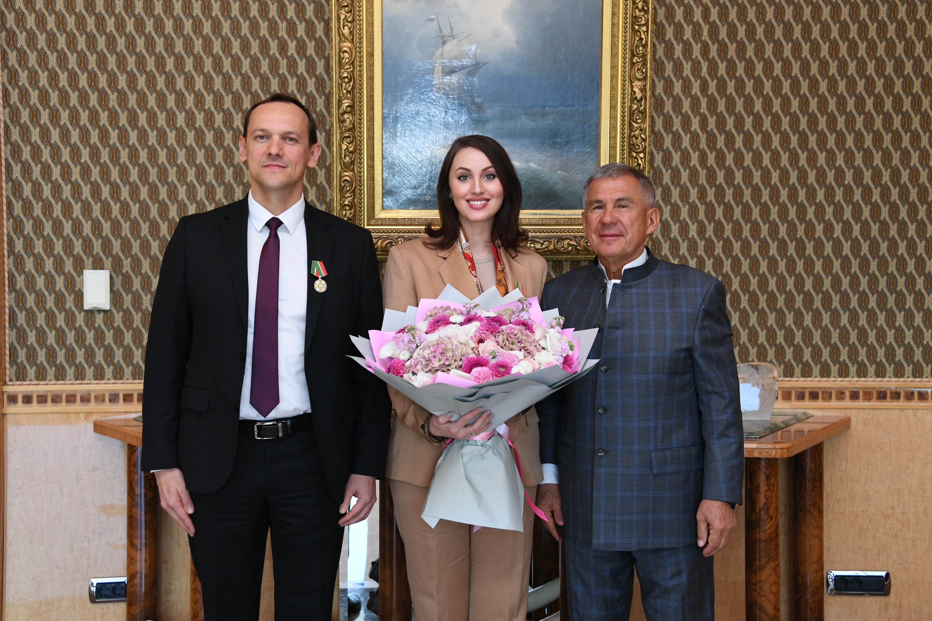 Во время встречи, проходившей в Доме Правительства РТ, Минниханов вручил Олегу Скуфинскому государственную награду РТ «За заслуги перед Республикой Татарстан». Такую же награду вручили заместителю Скуфинского, Елене Мартыновой.