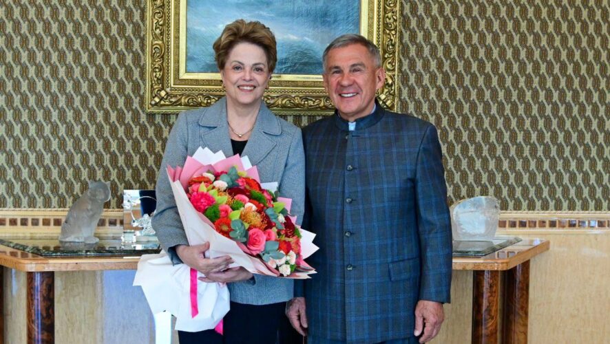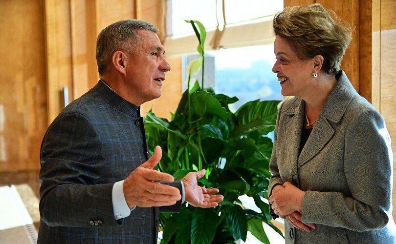 Рустам Минниханов провел встречу с Дилмой Роуссефф, президентом Нового банка развития БРИКС, которая прибыла в Казань прямым рейсом из Шанхая для участия в предстоящем саммите БРИКС, сообщили в пресс-службе раиса РТ.
