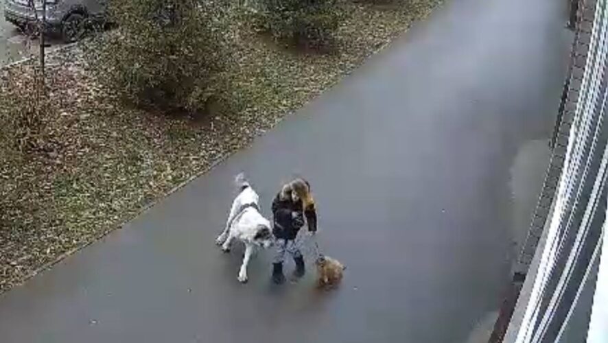 Монстр-алабай, который едва не загрыз маленькую собачку, продолжает разгуливать по улицам Казани