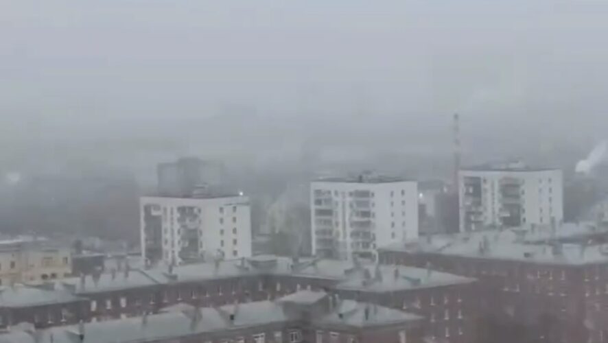 На кадрах, опубликованых в сети, видно, что с неба валятся огромные снежные хлопья. Видимость на улицах города ухудшена.