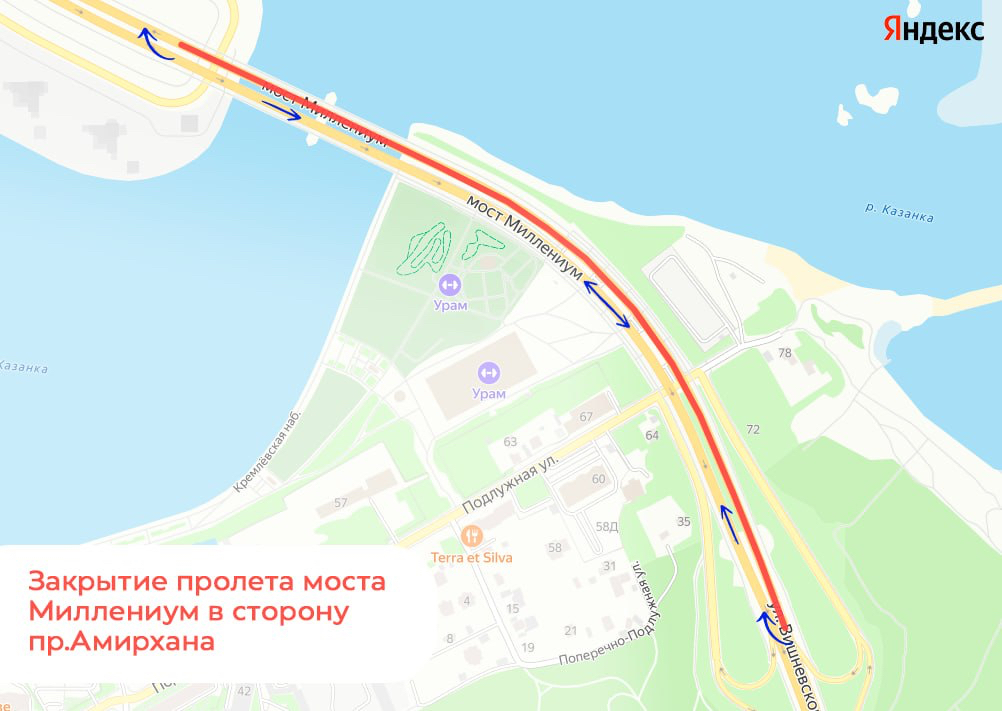 В мэрии Казани напомнили, что с 1 апреля мост «Миллениум» закрывается на ремонт. Так, для движения будет закрыта половина моста от ул.Вишневского до ул.Амирхана. Двустороннее движение будет организовано по второй половине моста.