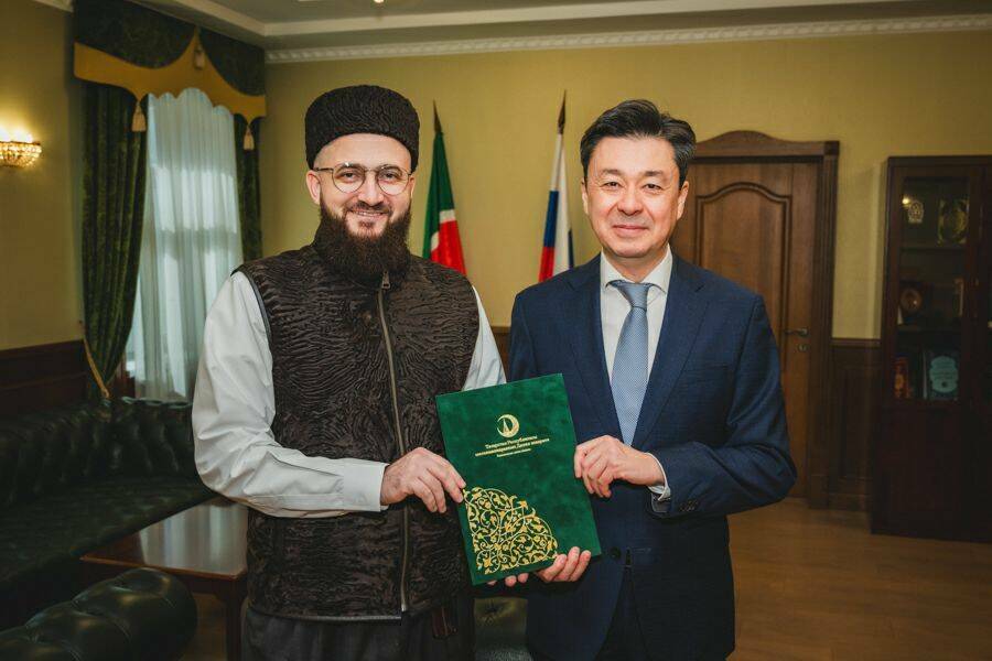 Сегодня муфтий Татарстана встретился в Казани с генеральным консулом Казахстана в Казани Ерланом Искаковым. Стороны обсудили укрепление религиозных, языковых и исторических связей между народами Татарстана и Казахстана. В ходе встречи была подчеркнута схожесть моделей развития Татарстана и Казахстана, а также достигнута договоренность о дальнейшем сотрудничестве для укрепления братских отношений.
