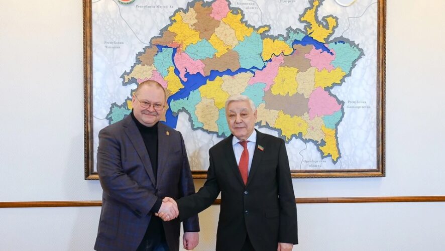 Во время своей рабочей поездки в Казань губернатор Пензенской области Олег Мельниченко встретился с Фаридом Мухаметшиным, председателем Государственного Совета Республики Татарстан. Обсуждение касалось расширения сотрудничества между регионами, а также передачи исторических документов.