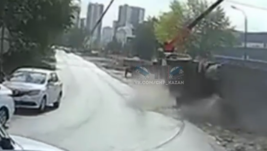 В Казани на улице Аделя Кутуя перевернулся мусоровоз, инцидент попал на видео. Кадрами в социальных сетях поделились очевидцы.