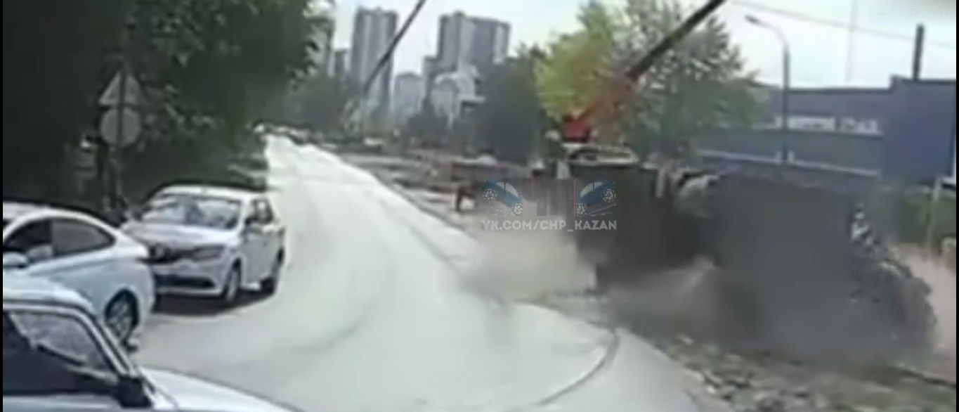 В Казани на улице Аделя Кутуя перевернулся мусоровоз, инцидент попал на видео. Кадрами в социальных сетях поделились очевидцы.