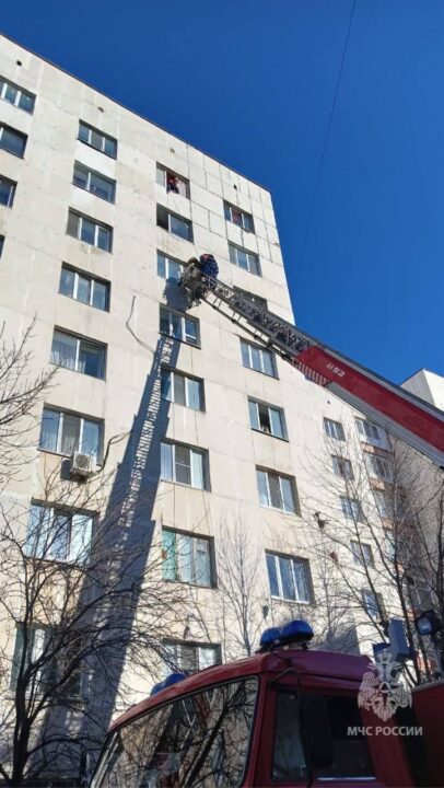 Инцидент произошел в 10-этажном многоквартирном доме. Сотрудники МЧС поднялись на автолестнице, обмотали его веревками и спустили на землю. Такие манипуляции спасателям пришлось провести трижды.