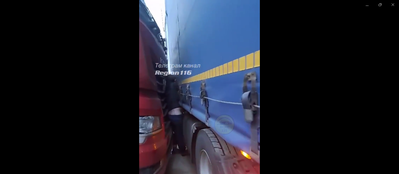На кадрах видно тело мужчины, которое застряло между двумя фурами. Предварительно, мужчина скончался. Как именно он оказался в ужасной ловушке — неизвестно.