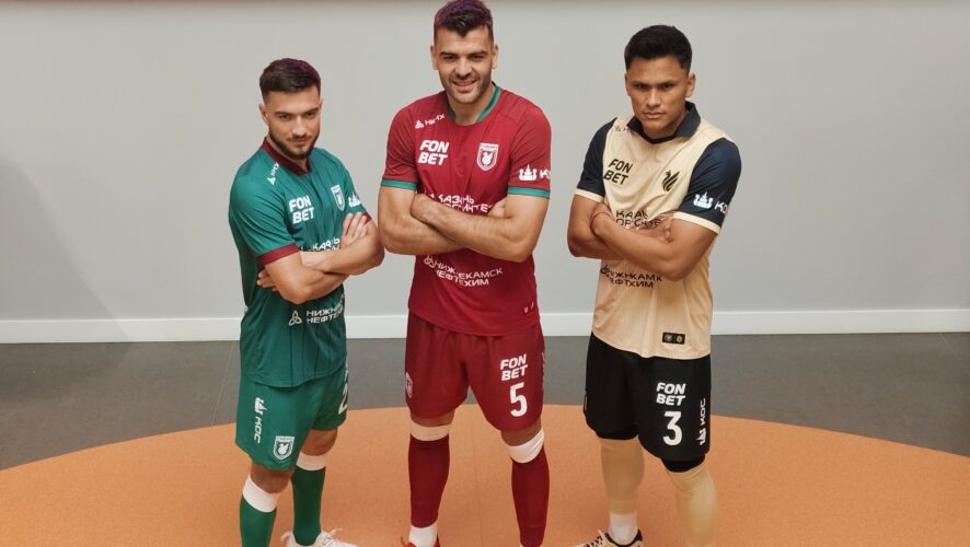 Из игроков на сцену первым вышел защитник Игор Вуячич в красной форме. Руслан Безруков надел зеленый комплект, и Дениль Мальдонадо – бежевый. У каждого цвета свой посыл: рубиновая форма посвящена Казани и Татарстану, зеленая – 20-летию Казанского метрополитена, бежевая – истории клуба.