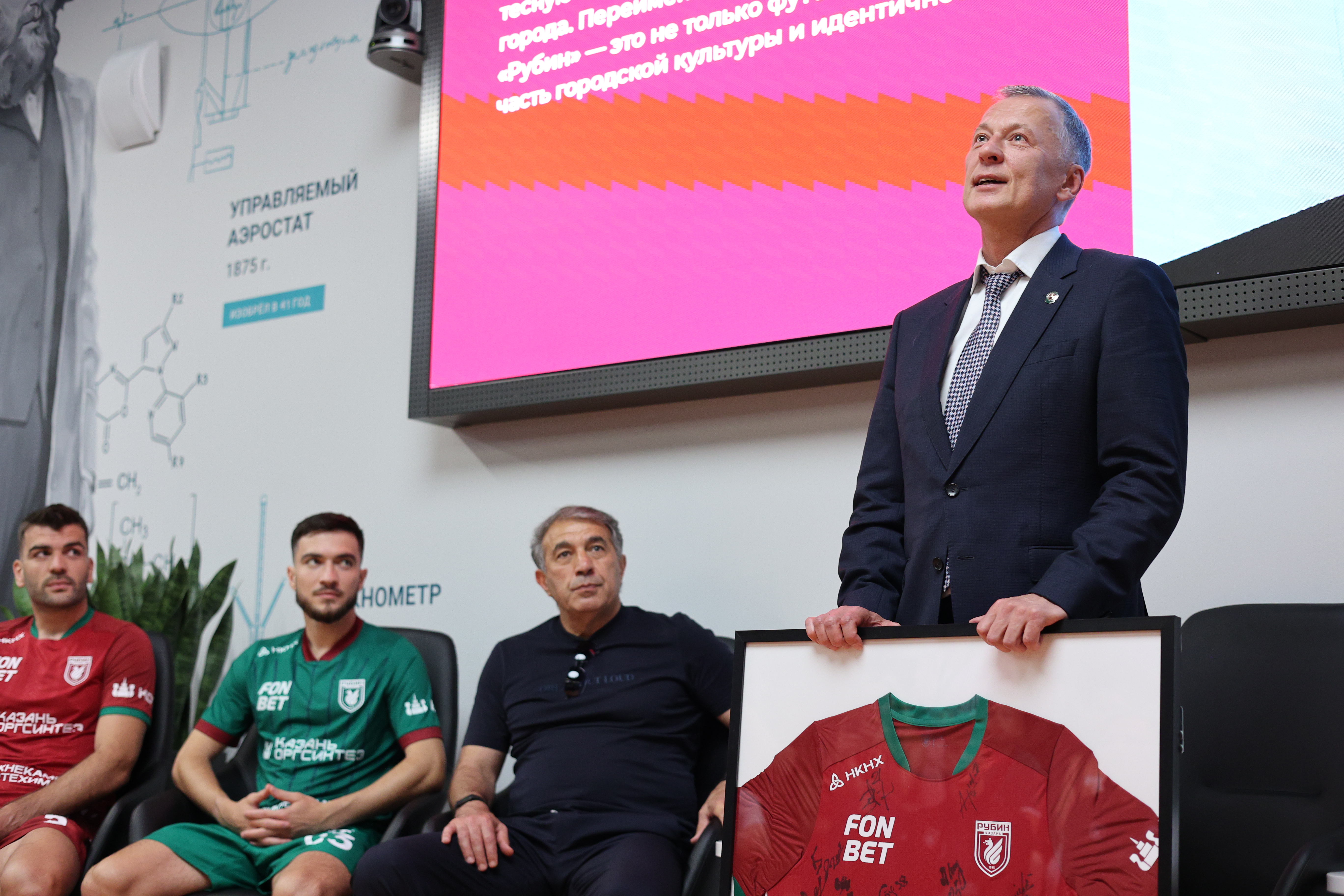 Футбольный клуб «Рубин» показал новую форму – презентация прошла на территории «Казаньоргсинтеза» (входит в СИБУР). В мероприятии приняли участие президент правления АНО «ФК «Рубин» Марат Сафиуллин, главный тренер «Рубина» Рашид Рахимов и игроки команды.
