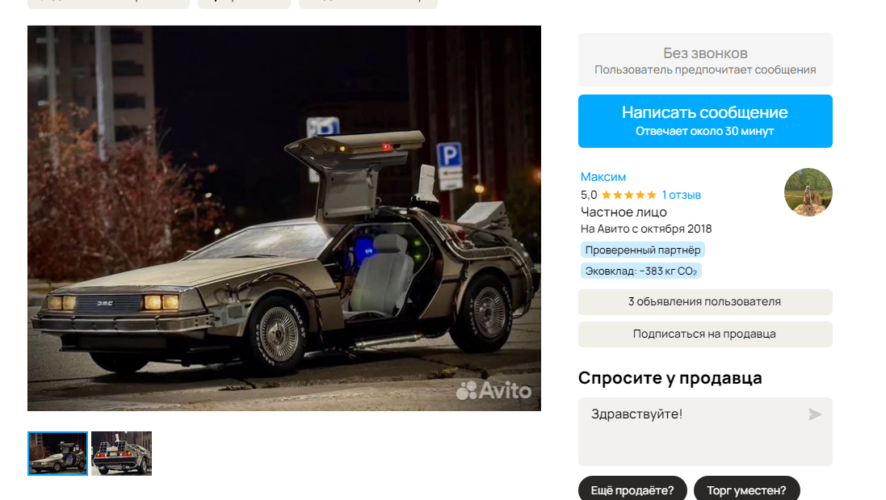 На сайте объявлений «Авито» появилось уникальное предложение: за 10 миллионов рублей в Казани продают легендарный автомобиль DeLorean DMC-12, известный по культовому фильму «Назад в будущее».