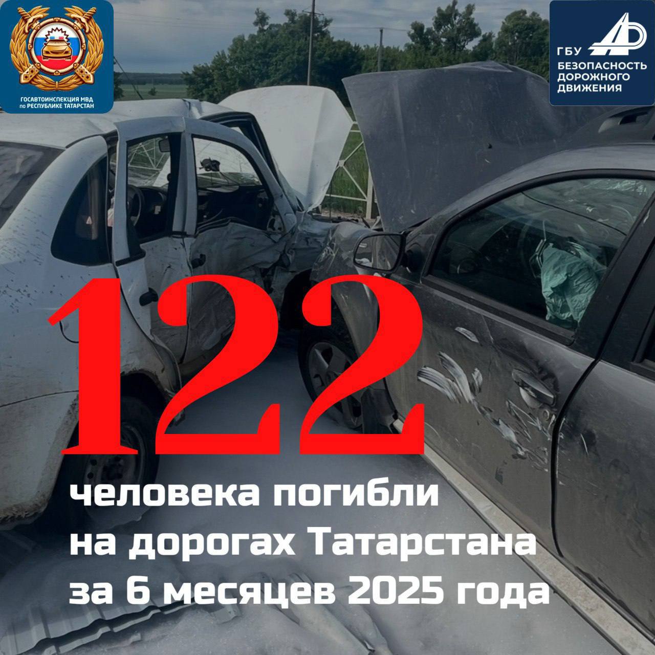 За первое полугодие 2025 года на дорогах Татарстана погибли 122 человека, сообщает ГБУ «Безопасность дорожного движения».