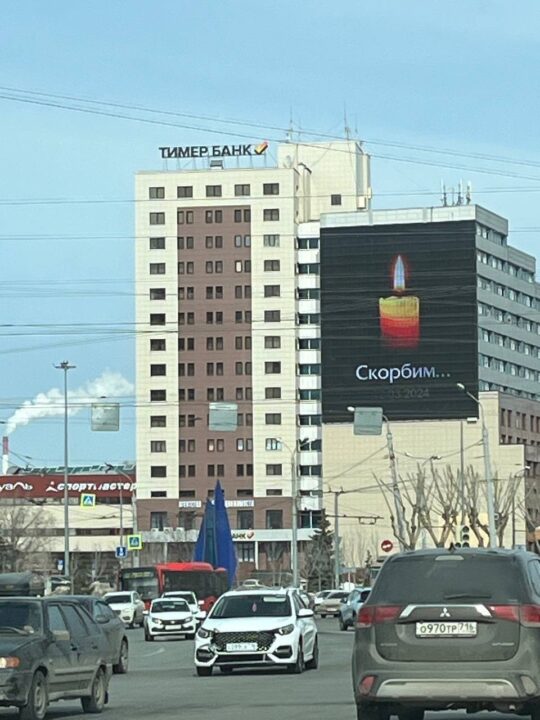 Баннеры с соболезнованиями пострадавшим и семьям погибших в теракте «Крокус Сити Холле». Фото появились в соцсетях.
