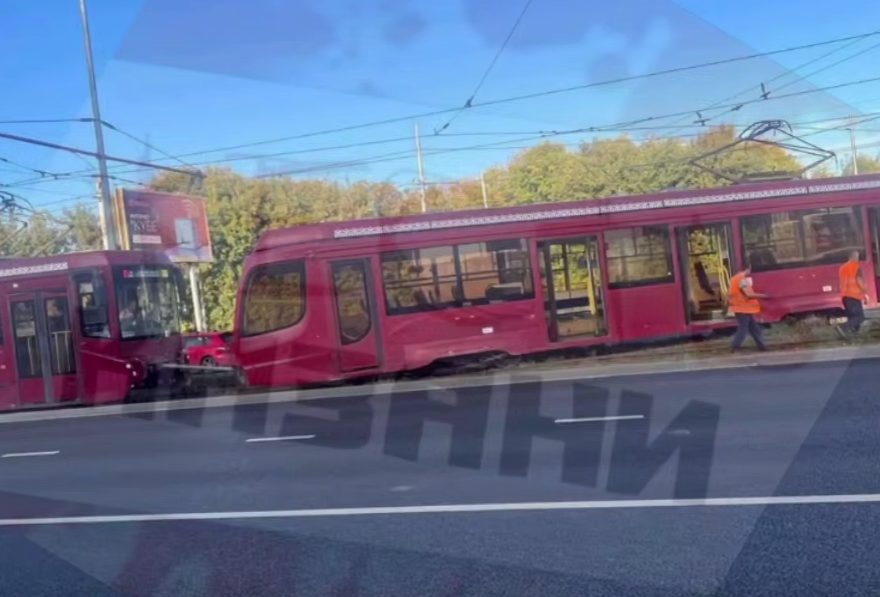 В Казани на улице Гвардейская состав трамвая сошел с рельсов.