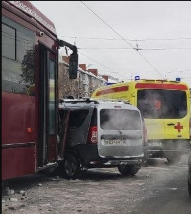 На кадрах видно, что автомобиль врезался в трамвай. На данный момент он стоит на путях. На месте работают медики, однако информации о пострадавших на данный момент нет. Обстоятельства случившегося устанавливаются, на месте работают сотрудники Госавтоинспекции.