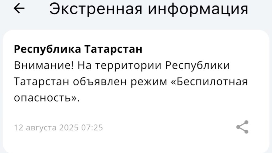 В Татарстане объявили режим «Беспилотная опасность». Об этом сообщает РСЧС.