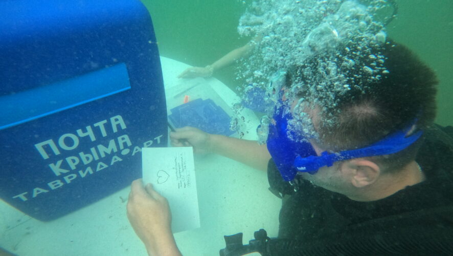 В Крыму на Фестивале молодого искусства «Таврида.АРТ», который проходит в Крыму с 1-3 августа, впервые в России заработала подводная почта. Уникальный проект стал частью программы «Дайвдвиж».