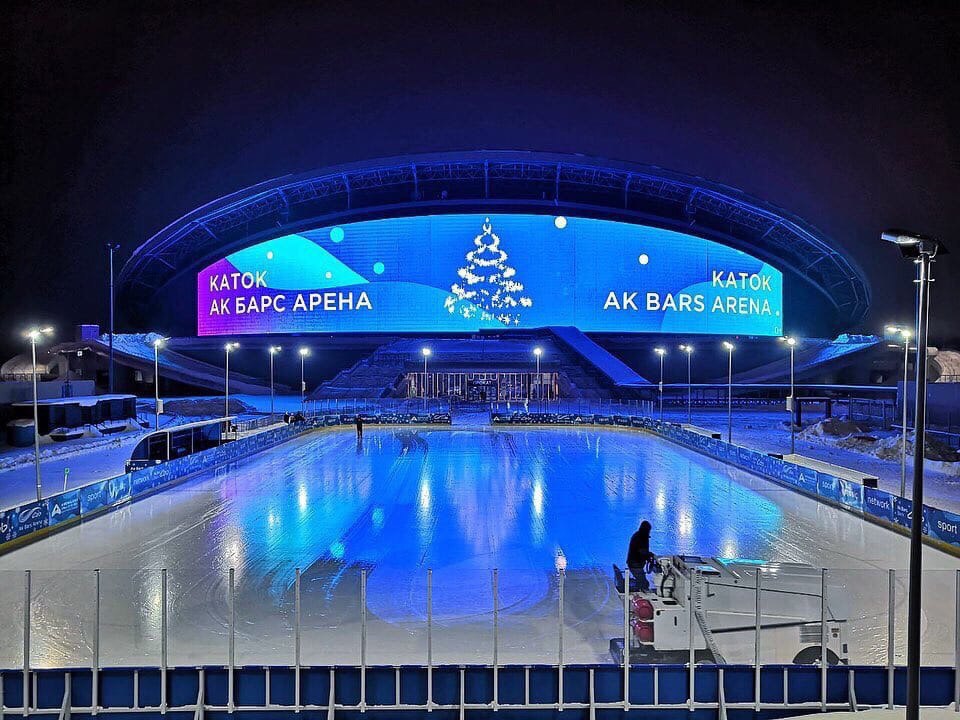 На прилегающей территории стадиона «Ак Барс Арена» в Казани начал работу ледовый каток. Открытие зимнего сезона состоялось 14 декабря, а уже 21 декабря здесь пройдет семейный праздник «Все на каток!», приуроченный к завершению Года семьи и Дню многодетных семей.