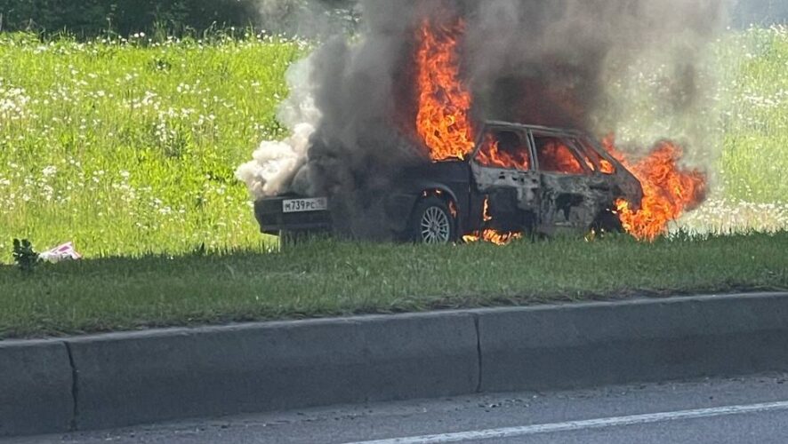 На трассе под Казанью дотла сгорела легковушка — видео
