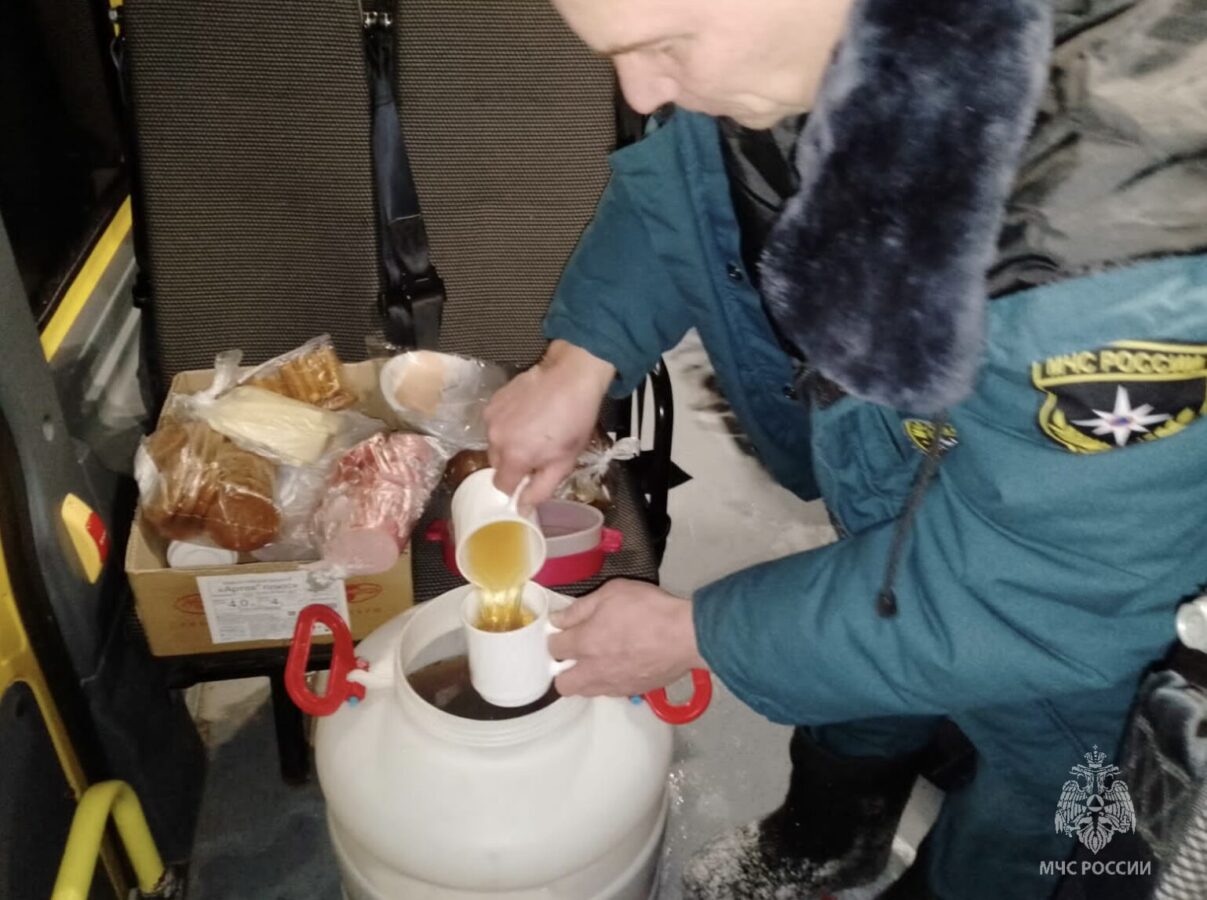 В то же время на границе с Ульяновской областью вблизи Алькеевского района для водителей грузовых автомобилей силами оперативной группы местного пожарно-спасательного гарнизона и муниципальных властей развернули пункт обогрева на базе школьного автобуса. Там, в ночь на 12 января, водители могли получить горячее питание.