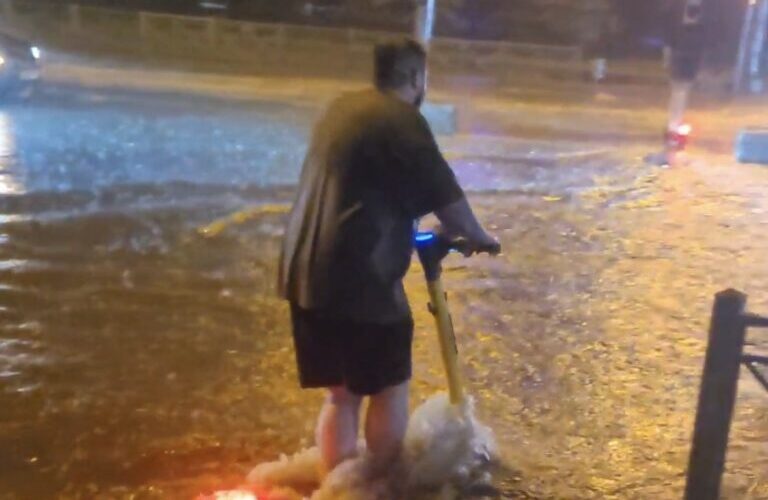 Очевидцы сняли на видео, как накануне вечером в центре Казани веселая молодая компания пытается переехать улицу Пушкина в Казани. Ребята, оседлав электросамокаты, буквально плывут по затопленной дождевой водой центральной улице города.