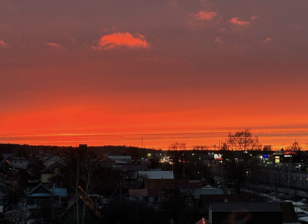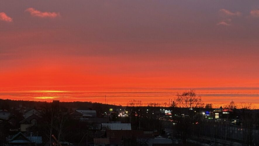 По народным приметам, такой алый закат предвещает ветреный день. Также многие говорят, что день, напротив, будет отличаться особенной сухостью.