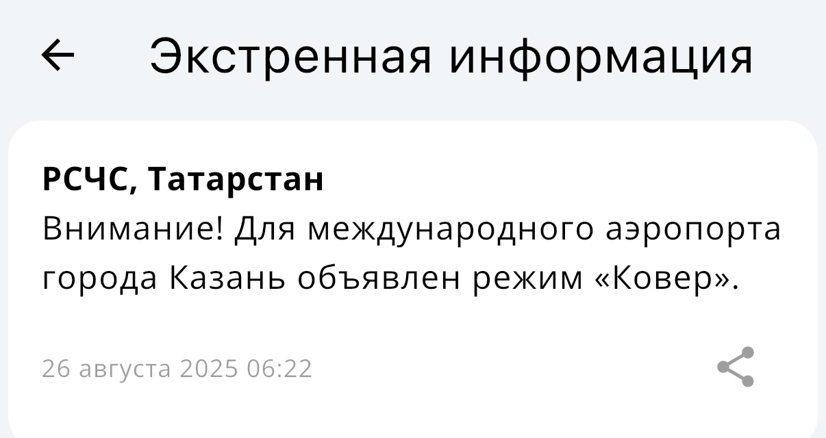 В шесть утра в республике был объявлен режим беспилотной опасности. Почти сразу был закрыт аэропорт Казани.