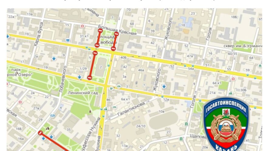 ⦁ Улица Кремлевская, на участке от улицы Лобачевского до улицы Нужина.