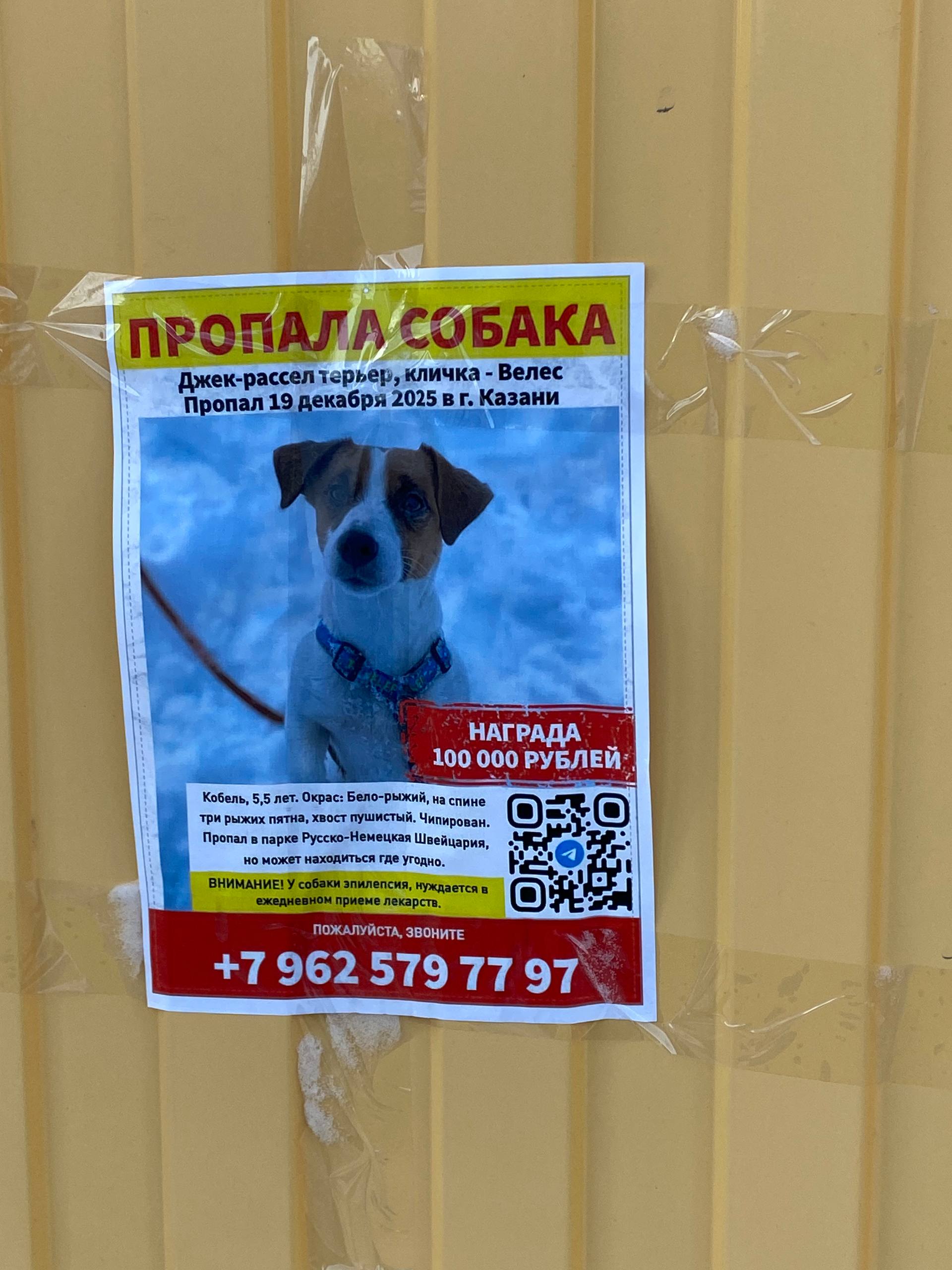 В Казани ищут одно из древнеславянских божеств, но есть нюанс. Речь идёт о щенке породы джек-рассел терьер, его кличка — Велес.