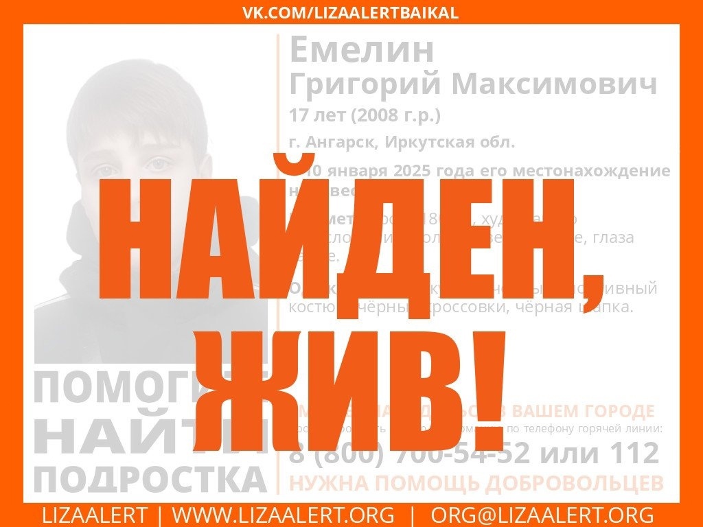 17-летний Григорий Емелин не выходил на связь с родными с 10-го января этого года. Все это время его пытались найти. Неизвестно, где он был всё это время.