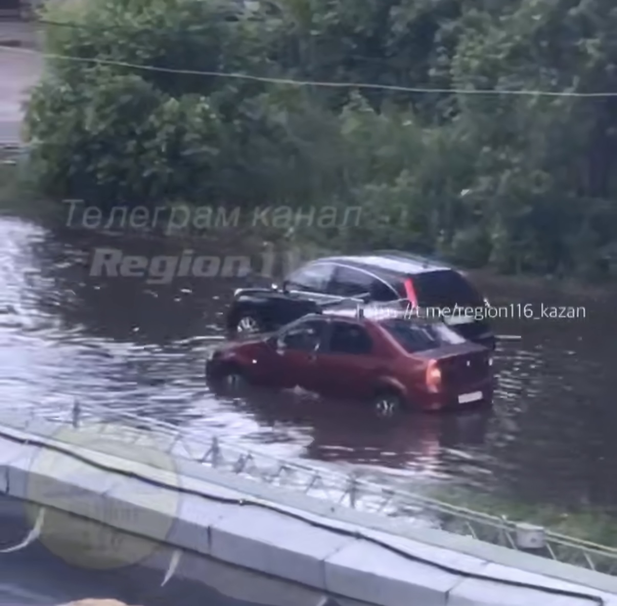 Аналогичная ситуация была накануне в Авиастроительном районе Казани. Там дождевой водой затоптали несколько основных дорог.