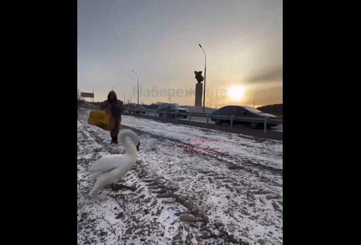 Судя по ролику, на помощь белоснежной птице бросились сразу несколько мужчин. На кадрах видно, как они окружили лебедя, который не мог взлететь из-за травмированного крыла. В результате его удалось поймать. После этого спасенного пернатого поместили в мешок, а после — в автомобиль.