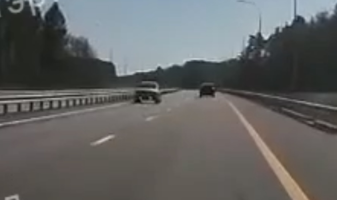 На записи видно, как по широкой четырехполосной дороге движется автомобиль, на котором установлен регистратор. От встречной полосы машину отделяет отбойник. В какой-то момент на встречную полосу откуда не возьмись вылетает внедорожник и уверенно едет по встречке.
