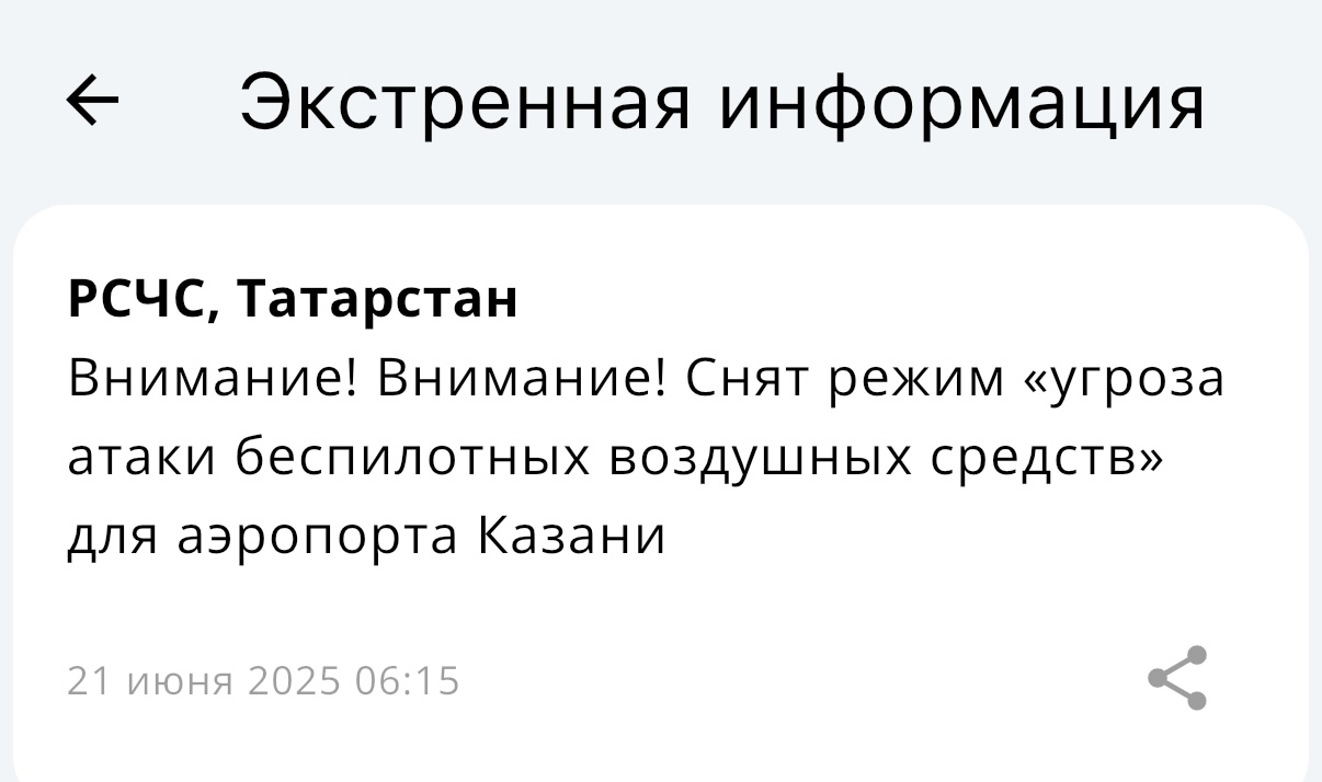 В Республике Татарстан снят режим беспилотной опасности. Об этом сообщает МЧС России.