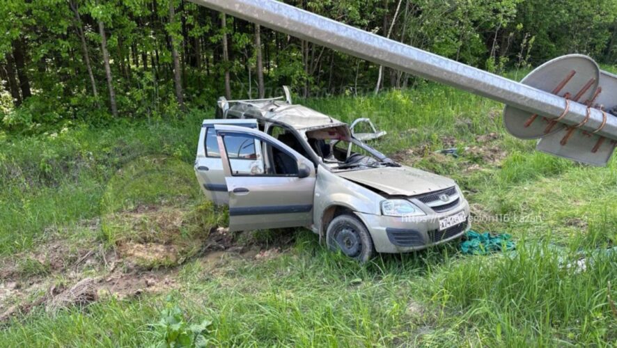 По предварительным данным, легковой автомобиль влетел на большой скорости в фонарный столб, после чего перевернулся с трассы.