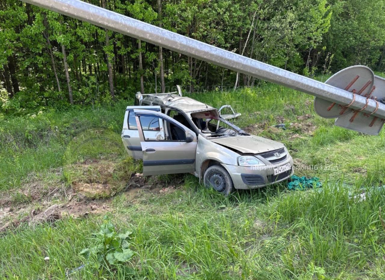 По предварительным данным, легковой автомобиль влетел на большой скорости в фонарный столб, после чего перевернулся с трассы.