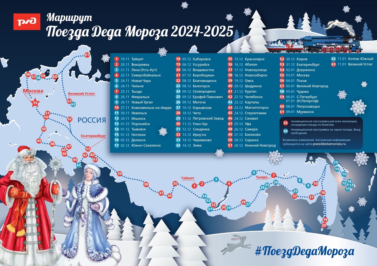 В официальной группе «Поезд Деда Мороза» заявили — при хорошей погоде состав отправится на остров Сахалин. Тем не менее поезд проедет мимо Казани и Татарстана, как и в прошлом году. За три года волшебный поезд проехал свыше 74 тысяч километров. В прошлые года он регулярно посещал Набережные Челны и столицу Татарстана.