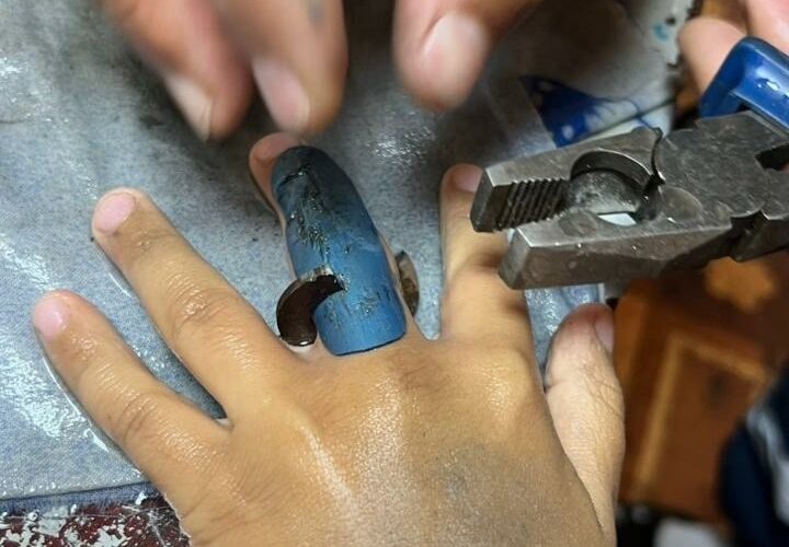 В Казани родители семилетнего мальчика обратились за помощью к спасателям, чтобы снять кольцо, которое оказалось застрявшим на пальце ребёнка. Палец сильно отёк, и самостоятельно освободить его ребёнок не смог. Спасатели зонального поисково-спасательного отряда №2 отреагировали оперативно и в считанные минуты аккуратно освободили палец ребёнка от металлического кольца, сообщили в ГУ МЧС России по РТ.
